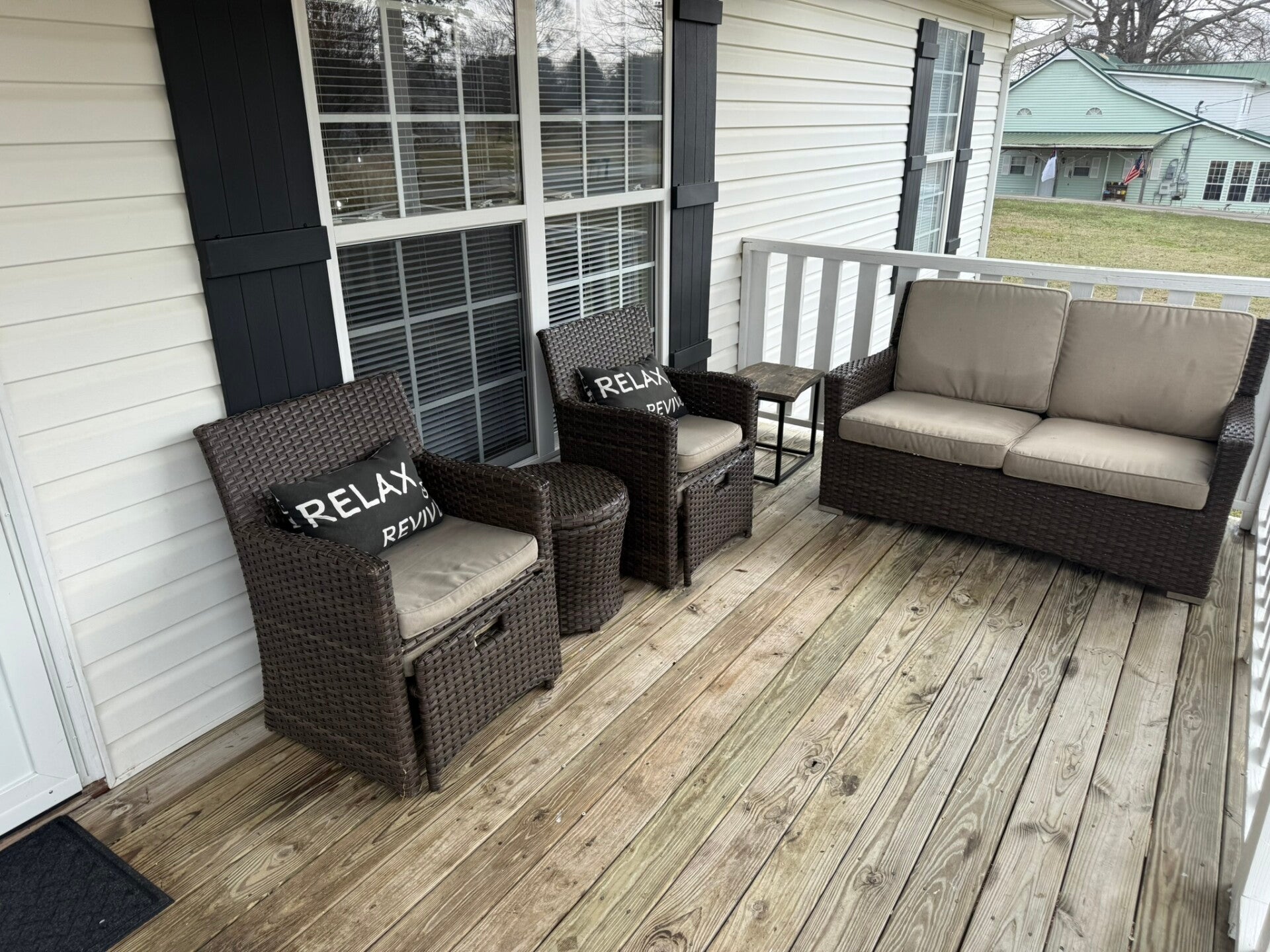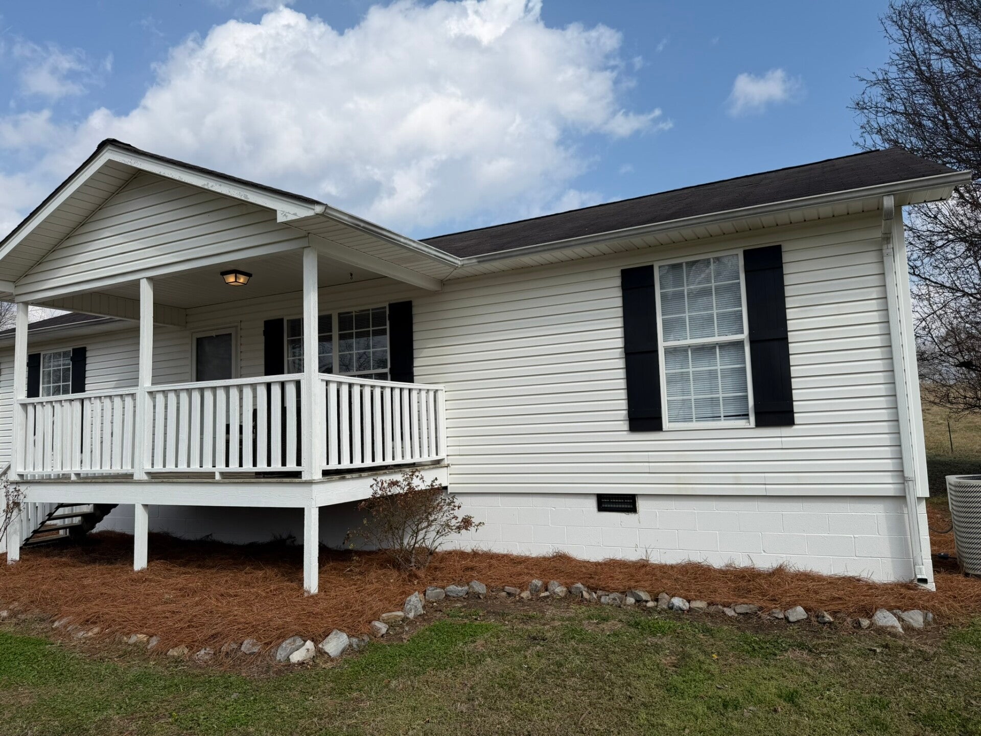 This 3 BD 2 BA sleeps 6 with a big porch and a nice level yard.